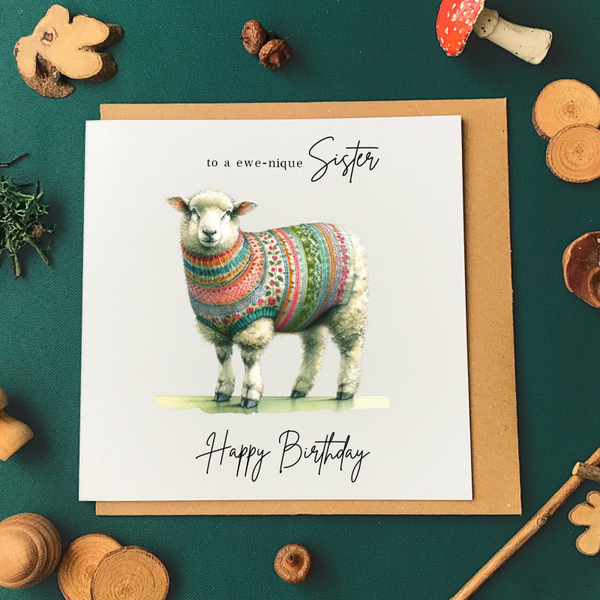 Sister Birthday Card - Sheep 'ewenique'