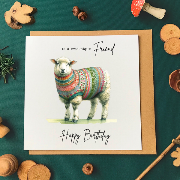 Friend Birthday Card - 'Ewenique'